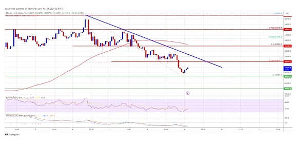 在 BTC/USD 货币对的小时图上,还形成了一条连接看跌趋势线,阻力位为 62,000 美元。比特币目前交易价格低于 63,000 美元和100 小时简单移动平均线。