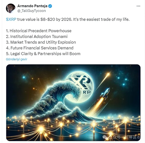 加密货币分析师 Armando Pantoja 对 XRP 的未来描绘了乐观的前景,预测到 2026 年其价值可能在 8 至 20 美元之间。这一预测与当前价值相比大幅增长高达 3,557.6%。