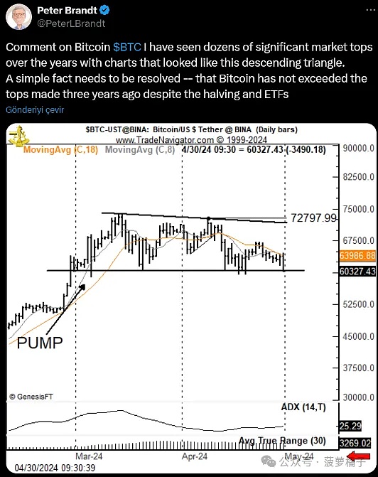 著名金融分析师彼得·布兰特对市场模型进行了回顾。他的分析表明,比特币在潜在复苏之前可能会面临进一步下跌,在这一调整阶段可能会回落至 40,000 美元区域。
