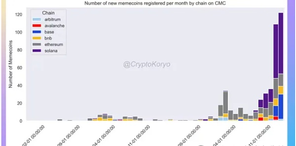 每月在CoinMarketCap上按链注册的模因币数量