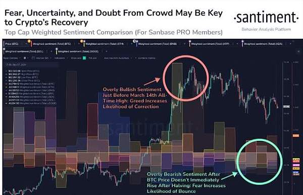 链上数据提供商 Santiment 补充说,目前市场上存在过度看跌情绪,因为比特币价格在减半后并没有立即上涨。此 FUD 增加了反弹的可能性。