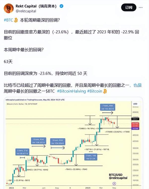 在最新的分析中,加密货币分析师Rekt Capital透露,加密货币市场的持续回撤已正式超过之前的记录。它以 -23.6% 的跌幅成为最深的回调,超过了 2023 年初观察到的 -22.9% 的回撤位。