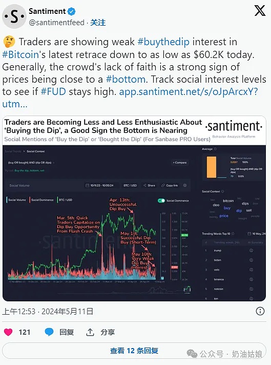 Santiment 表示,比特币最近的回调导致交易员出现适度的“逢低买入”活动,这表明价格已经触底。Bitfinex 分析师认为,经济放缓将持续到初夏,直到美联储在 6 月份实施资产负债表缩减限制措施为止。