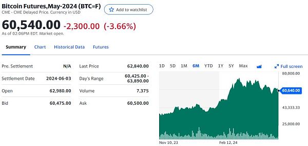截至发稿,比特币跌幅3.66%,现报60,540美元。