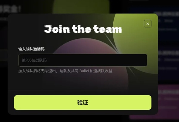 输入战队邀请码即可,加入战队后无法退出,也不能中途更换战队。战队质押的数量越多获得的奖励越多,加入和创建战队都能够获得额外的奖励。