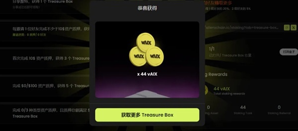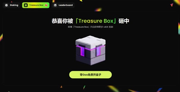 2、打开宝箱后即可看到宝箱的vAIX奖励,打开宝箱不会产生交互,相当于0撸vAIX。