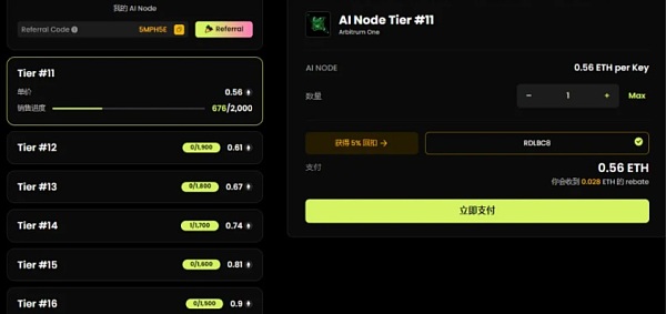 AI节点销售,运行AI节点获取奖励ALIENX节点通过AI技术实现对区块链网络安全性的保障,AI Node通过自动参与网络的观测并实时进行监控,从而增加了网络的智能化以及提升效率,包括转账速度等关键性能的提升。通过AI节点,ALIENX成为第一个AI驱动的区块链网络。运行AI Node相对比较简单,通过Chrome浏览器运行节点程序,就可以获取相应的节点奖励。AI节点运营者可以获得40%的代币奖励,这种方式和搲石广比较类似,用户只需要购买许可即可运行AI节点。AINode后期也可以进行转让和在市场中进行交易。AI Node现在还正在销售中,可以使用ETH或SOL进行购买,越早参与,价格越低,目前已经销售了1万个节点以上,也从侧面说明了ALIENX比较高的热度。