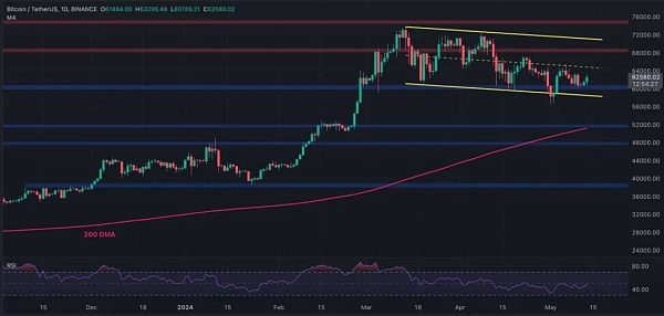 6 万美元的支撑区域也多次守住了价格,市场似乎正在瞄准该通道的更高边界。