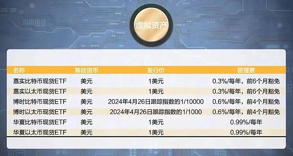 今年1月11日凌晨,美国证监会(SEC)宣布,已通过加急模式批准了现货比特币ETF上市交易。而随后在4月29日,香港证监会也正式批准华夏香港、博时国际及嘉实国际旗下6只虚拟资产现货货币ETF,开启吸收亚洲投机客的大门。
