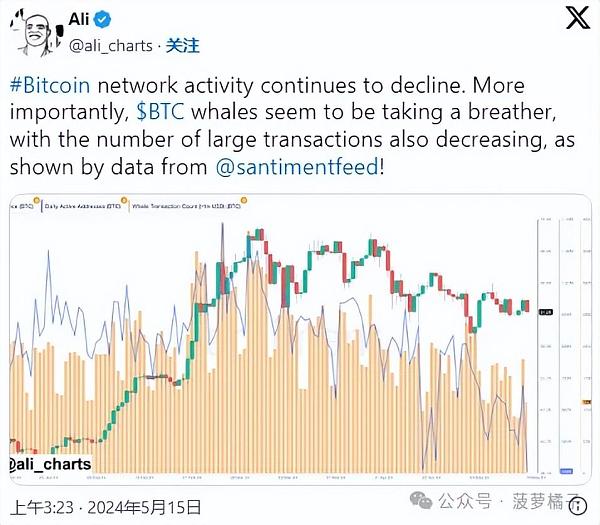 根据 Santiment 的洞察,比特币的网络活动正在经历显着下降。与此同时,比特币鲸鱼显示出活动减少的迹象,大额交易的减少就证明了这一点。