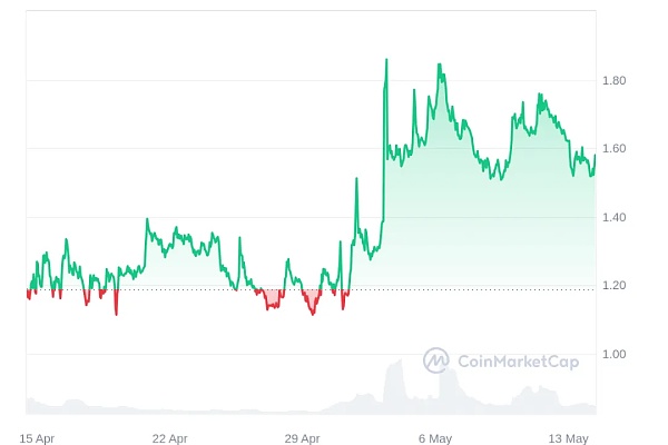 过去24小时内,PEPE上涨了21.24%,市值突破40亿美元。这一增长已将 PEPE 推升至 0.00001072 美元的历史新高,即今天创下的纪录。与此同时,WienerAI 通过其 ICO 吸引了相当多的关注,筹集了超过 170 万美元。此外,ZETA 目前价格为 1.57 美元,近一个月涨幅达 31.77%。
