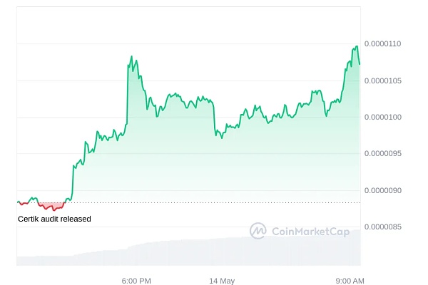 Pepe 在过去 24 小时内经历了飙升,价值增长了 21.24%,使其市值超过 40 亿美元。这一增长使 PEPE 升至历史新高 0.00001072 美元,这是今天创下的纪录。目前,PEPE 在 CoinMarketCap 上的市值排名第 23 位,自 5 月 9 日以来,PEPE 的相对强弱指数 (RSI) 呈现稳步上升趋势。