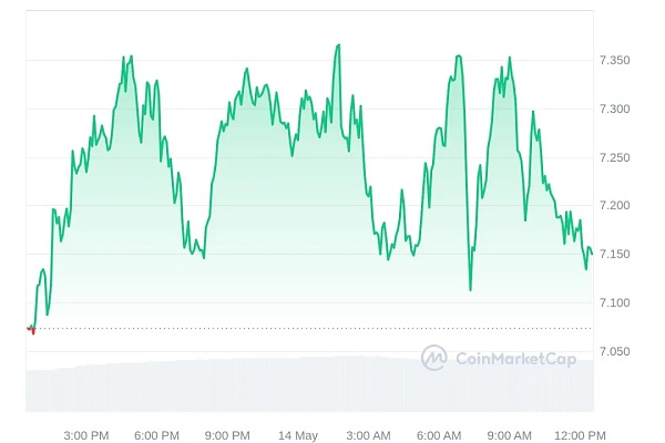 尽管如此,上升趋势表明复苏反弹即将挑战之前的 9 美元峰值。这标志着当前回调阶段的结束并表明需求增加。目前,NEAR 的交易价格为 7.16 美元,有望突破 8 美元大关。长期支撑趋势线也延伸了看涨趋势并形成更高的高点。