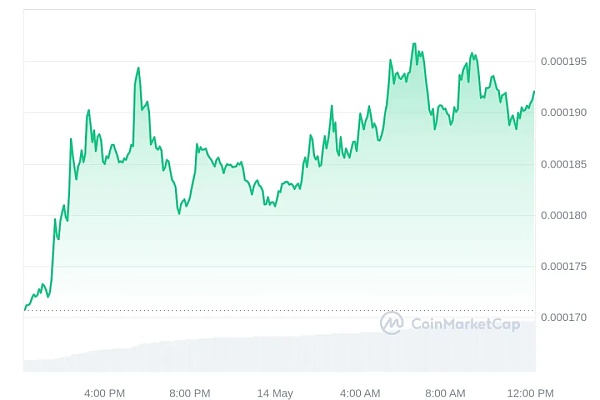 在此期间,Floki Inu 的价格在过去 24 小时内上涨了 12.36%,在当前交易中达到 0.0001918 美元。加密货币交易量同期飙升 320.12% 至 5.1894 亿美元,推动了积极的市场情绪。