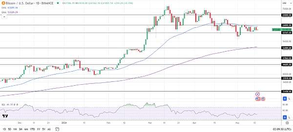 14日RSI读数为46.38,比特币在进入超卖区域之前可能会跌破58000美元大关。