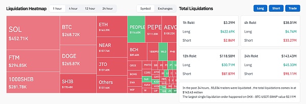 具体来说,其中4594万美元的比特币空头头寸和1788万美元的以太币(ETH)空头头寸也被清算。此外,全天有627万美元的PEPE迷因币空头被清算。