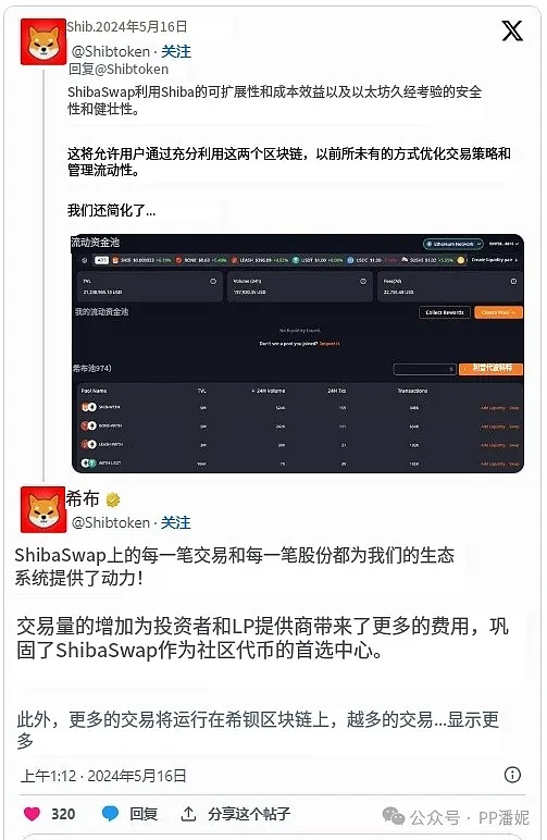 开发者在 X 帖子中表示,ShibaSwap 上的每一次交换和质押都有助于生态系统的增长,因为交易量的增加会给质押者和 LP 提供商带来更高的费用。