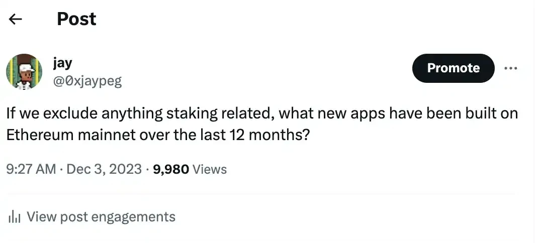 正如查理芒格一直说的:「给我看激励措施,我就会告诉你结果」。在以太坊上构建的激励结构在现有的其他区块链中是较差的。风险投资公司和新的 L1 团队非常有兴趣建设一个强大、繁荣的生态系统。作为投资者,我会思考当代币如此分散并且生态系统已经如此拥挤时,为什么我的团队还要在以太坊上构建?为什么不在我有利害关系的区块链上促进应用开发,那里 L1 的估值要低得多。