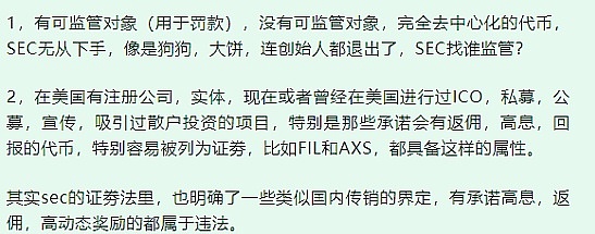 加密货币的监管,现在以老美最为关键,作为全球大棒,又恰逢比特币ETF通过之后,以太坊ETF的审核前夕(月底之前),老美的影响力前所未有,监管符合常理,也是顺其自然的。要了解监管,因为它的重要性绝对超出了很多人的想象,跟我们每个人的投资有关系。但也不要过度的解读监管,因为监管只会针对某些板块,针对某些割韭菜项目,甚至诈骗,相对来说并不是坏事。自2023年的6月份,sec初步将约100个代币列为涉嫌代币证卷化,其后的一段时间,这些代币的表现都不尽如人意,直到几个月之后,市场缓和,SEC放松之后,很多证券代币才开始爆发(SOL,ICP等),但大部分仍旧表现不够好。针对未来的可能性监管,王哥今天解答一下大家比较关心的一些问题。1,SOL的监管风险如何。最近监管重提,这一波反弹,同样证券代币表现不够好,表现最好的也就是SOL了。SOL的证券代币化的问题,我之前的文章中说过,这个项目与老美的资本和机构牵涉太深,所以对SOL的定义,甚至比ETH更难定义为证券。这一点,大家可以放心,SOL被定义为证券的可能性,甚至低于ETH。交琉qun+V:2758624303如果真的被定位为证券,之前FTX的两笔大交易,未来的交易,接盘的机构岂不是真傻子?动辄高达上亿的交易,接手之前肯定得搞清楚。综上所述,SOL仍旧是长线标的。2,代币确定证券化之后,最大的风险是什么?加密货币是去中心化的,但是加密货币交易所和背后的开发主体是中心化的。所以任何加密货币,除了类似BTC,DOGE这种创始人退出的,大部分都是要受监管掣肘的,这是无奈的现实。去年由于中东危机,牵扯到隐私代币帮助“恐怖组织”洗钱风波,导致欧意和币安下架了多个隐私币。从这个角度看,老美对加密交易所是有一定的话语权的。代币一旦被列为证券,就要遵守美国的证券法,其加密货币的属性和优势就荡然无存,也不再适合在交易所交易。综上,如果代币被列为证券,可能面临最大的风险是顶级交易所下架。3,哪些代币可能会被列为证券?pos,权益挖矿,分红属性,面向散户直接一级市场兜售代币,这些是有可能被列为证券的,大家可以看看现在的项目,一般都不敢这样卖了,都是变相的质押分币了,本质还是差不多。这个问题,去年已经分析过,看当时怎么说的。