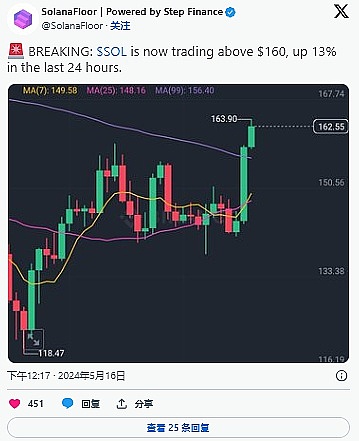 根据 CoinMarketcap 的数据,Solana 在过去 24 小时内上涨了 12%,截至发稿时交易价格为 162 美元。该代币上个月上涨了 21%,逐渐形成实现新价格里程碑的动力。