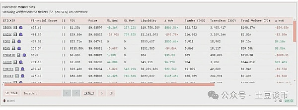 在刚推出时,大量迷因币在此竞争,社交分数(该代币在Farcaster 上受社群热议的程度)与财务分数(以交易量、流动性衡量)低,多数迷因币永远无法在这阶段脱颖而出。