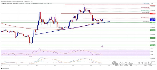 狗狗币修正涨幅并测试兑美元 0.150 美元区域。DOGE 目前正在形成底部,可能会在 0.1520 美元上方开始新的上涨。