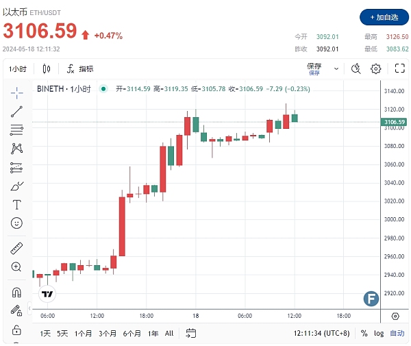 周六(5月18日),以太币从隔夜低点2933美元飙升,一度触及3126美元高峰,涨势跑赢老大哥比特币。美国最大加密交易所Coinbase分析师表示,美国证监会可能很快将批准以太币现货ETF。