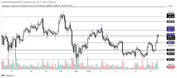 如果信心重拾,以太币可能会尝试突破3161美元的阻力位,如果成功,将突破3251美元大关。然而,重要的是要注意美国证监会于5月23日对以太币现货ETF做出决定之前几天的波动。