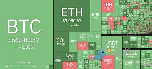 比推数据显示,加密市场在本周结束时呈走高趋势,比特币自 4 月 23 日以来首次突破 67,000 美元,引发了整个市场的反弹,以太坊(ETH)上涨5.3%,Solana (SOL) 上涨 7.7%。加密总市值增长了 3%,达到 2.42 万亿美元。