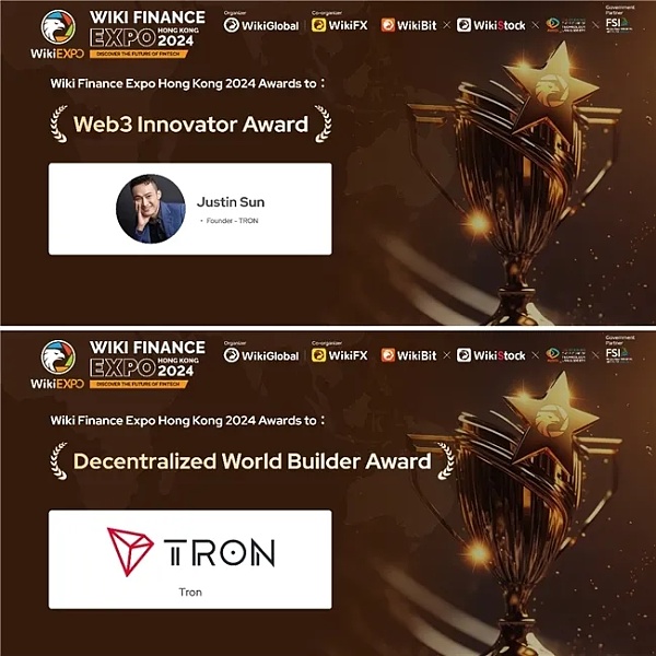 再获行业顶级峰会认可:孙宇晨与波场TRON斩获Wiki Finance EXPO Hong Kong两项大奖