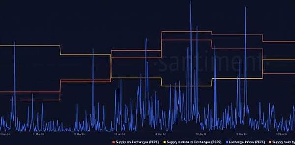 有趣的是,在价格下跌后,PEPE 在交易所的供应量开始增加。同时,交易所以外的供应量从 5 月 18 日开始下降,预示着抛售活动的增加。