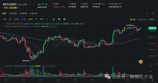 周末BTC轻度回调整理,在66000受到支撑,整体走势依然健康,今日预期继续盘整,调整蓄力,继续发起下一次冲击,ETH在3050关键位置受到支撑,蓄力调整,有望开启新一轮补涨,ETH上方阻力并不大,站稳后先看3250然后3400-3500区间有较重阻力,山寨板块跟随主流轻度盘整等待ETH补涨,山寨即将跟进