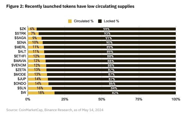 PS:币安研究的同一篇文章中还有一张图片也广为流传,声称 2022 年推出的代币在推出时的平均流通量为 41%。