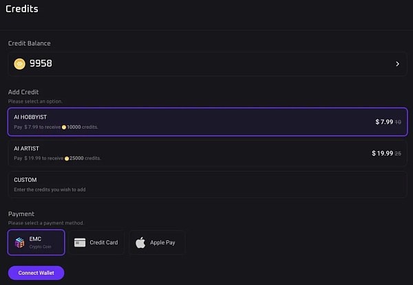 在EMC网络中调用算力时(无论是进行AI应用的开发,还是使用AI Bot进行生图、生文等),需要充值$EMC来获取credits,充值的$EMC将全部销毁。这将使得$EMC价值不断增长,吸引越来越多的开发者和创作者前来使用,并获取丰厚的奖励。