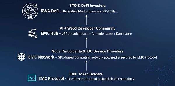 EMC面向全球第一个提出了“DeAI”的全新概念,以AI应用需求驱动算力网络,建立一体化的AI应用生态,目标是成为去中心化的“OpenAI”。