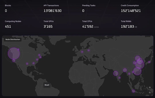从使用情况来看,截至目前,有450多个算力节点分布全球各地,超过1208万次API交互。对于一个新项目来说,这样的数据让人眼前一亮,也侧面反映了EMC本身的AI算力基础设施建设能力。