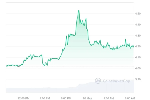 随着看涨压力的增加,Arcblock 的原生代币 ABT 正在经历大幅上涨。Arcblock 是一个简化去中心化应用程序 (DApp) 创建的平台。该山寨币价格为 4.22 美元,过去 24 小时内上涨了 5.67%。过去一个月,根据 CoinMarketCap 的数据,ABT 的价格上涨了 87.80%。
