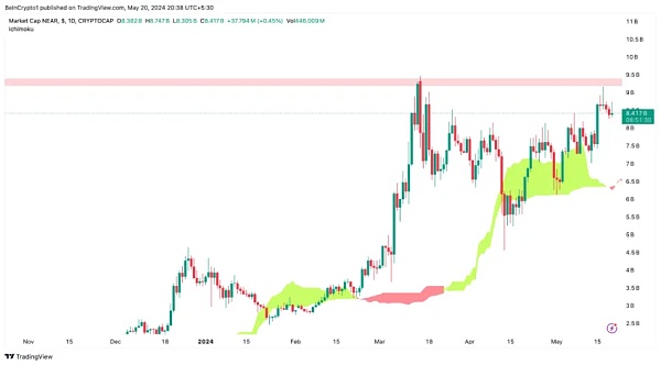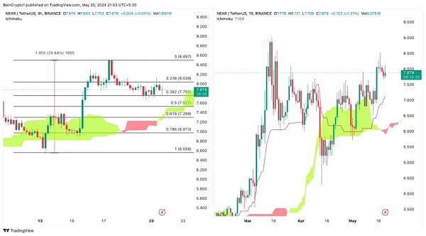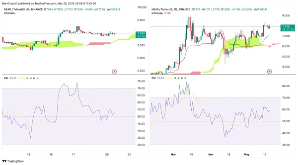 NEAR 价格走势维持在 4 小时 Ichimoku 云之上
