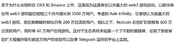 交易所希望参与这个重要时刻。OKX、Binance、Bybit 和其他交易所都认可了 Notcoin 的“可能什么都不是”的愿景。这个口号“可能什么都不是”是因为 Notcoin 从未声称自己是重要的东西,甚至暗示用户可能会浪费时间。但相反,它已经证明自己是相当重要的。