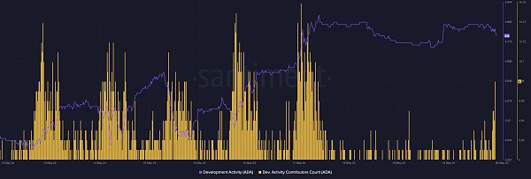 AMBCrypto 对 Santiment 数据的分析显示,在经历下跌之后,ADA 的开发活动图在过去一周大幅上升。
