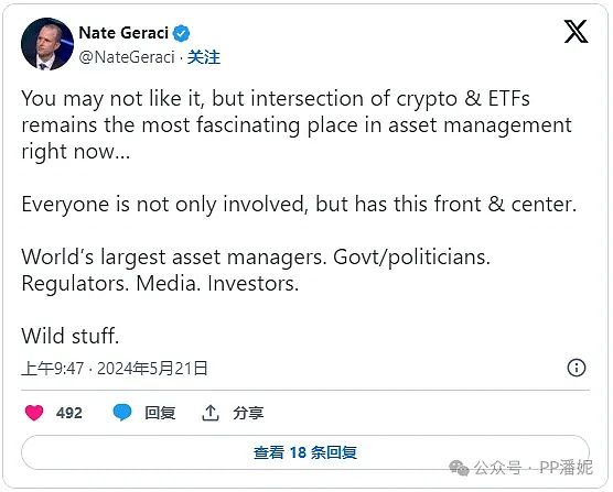 ETF Store 总裁 Nate Geraci 表示,加密货币与交易所交易产品之间的结合“仍然是目前资产管理领域最迷人的地方。”