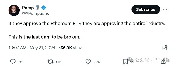 “如果他们批准了以太坊 ETF,他们就批准了整个行业。这是最后一座被冲破的大坝。”