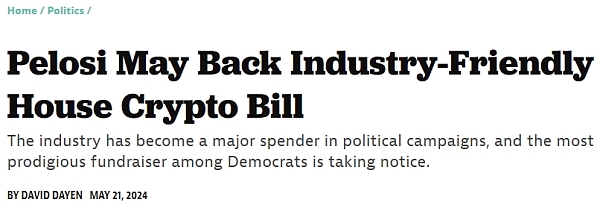 据悉,佩洛西对支持加密货币的法案的支持,是民主党对加密货币的最新热情。