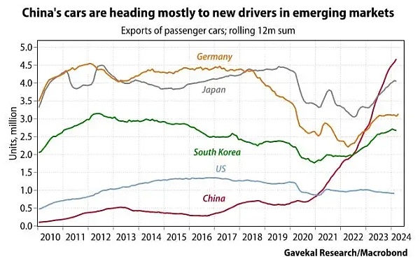 正如您所看到的,中国和日本在新兴乘用车出口市场上并驾齐驱。我将此作为全球出口竞争的一个例子。从每年的汽车购买量来看,这可能是最重要的出口市场。此外,全球南方国家年轻且不断增长;未来几年,他们的人均汽车保有量将会增加。