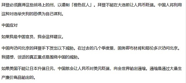 读完这些假设情景,读者可能会问,为什么我认为美国能够左右日本的货币政策。关键的假设是,通过威胁美国,中国可以说服美国指示日本升值日元。