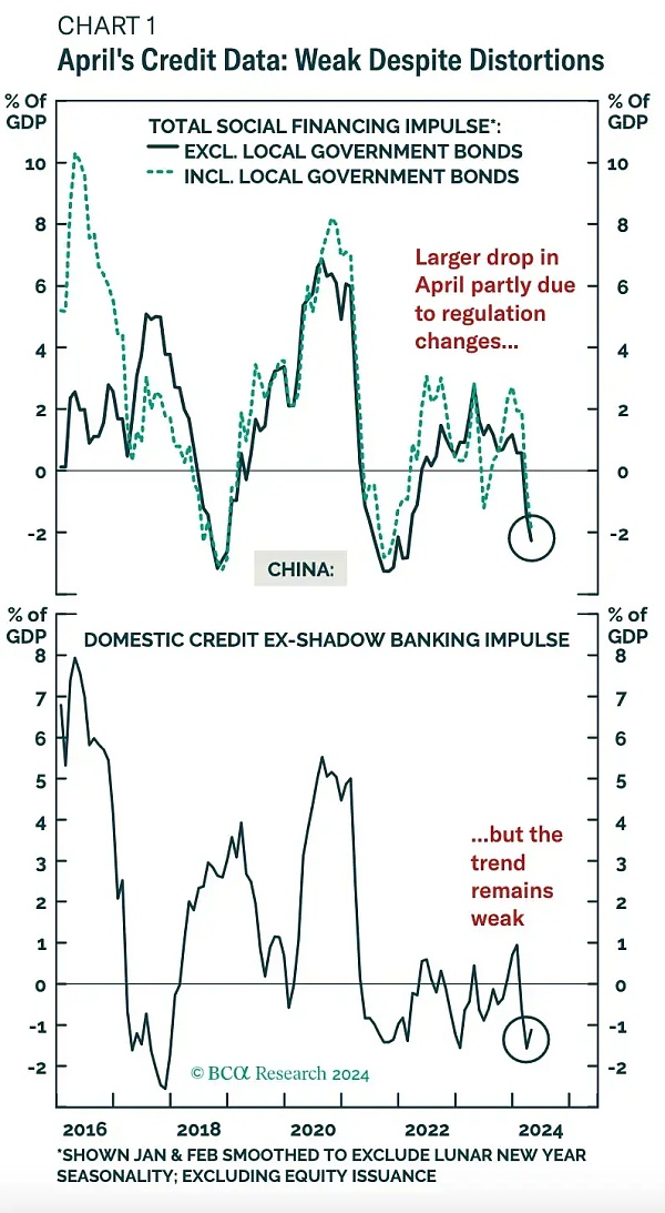 这些BCA研究图表清楚地显示出负面的信贷冲动,这表明信贷货币创造不足。