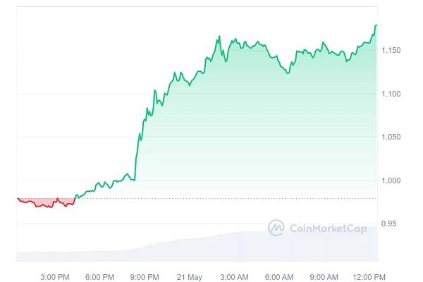 尽管 Arbitrum 价格的当前指标是中性的,但如果获得看涨势头,其价格可能会上涨。预测表明,到 2024 年底,Arbitrum 的价格可能会达到 1.41 美元,使其成为最值得考虑的山寨币之一。该代币目前的交易价格为 1.18 美元,在过去 24 小时内上涨了 20.47%,反映出全球加密货币资本化的类似增长。