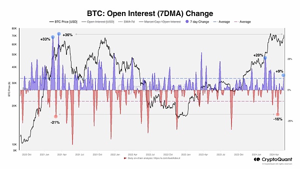 相比之下,2024 年 1 月的涨幅为 20%,2021 年的多次 OI 7DMA 变动也接近 20%。