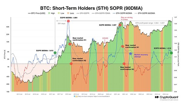 截至发稿时,STH SOPR 的 90 天移动平均线为 1.015。