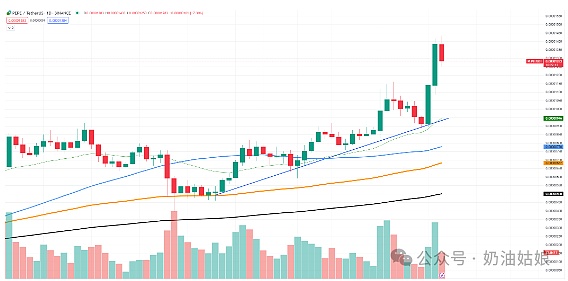图表上的移动平均线提供了进一步的见解。50日移动均线(蓝线)已上穿200日移动均线(橙线),形成“金叉”。这通常被视为看涨指标,表明当前的上升趋势可能会持续。此外,交易量很高,增强了看涨情绪。